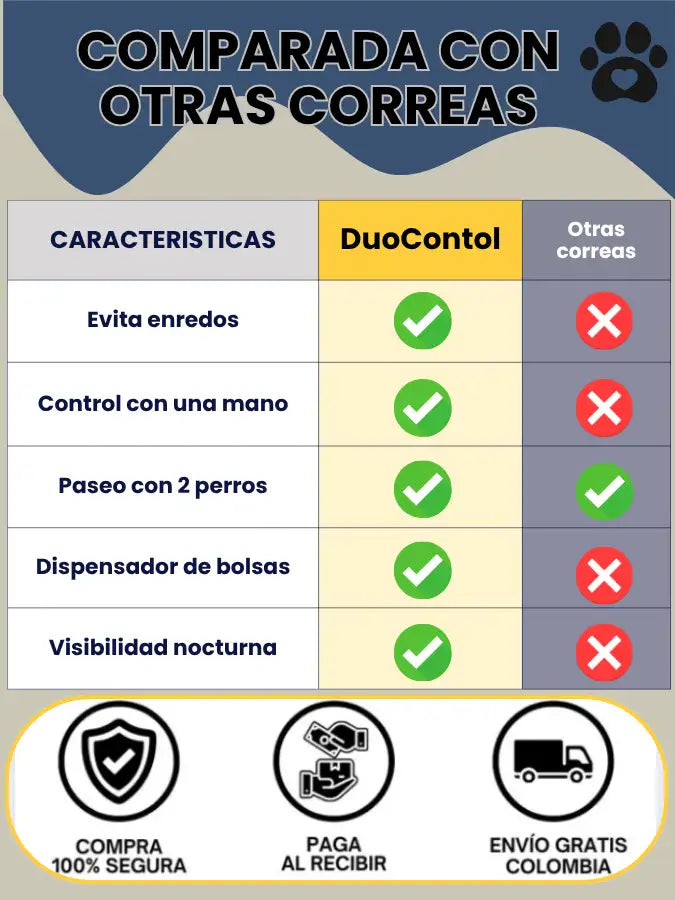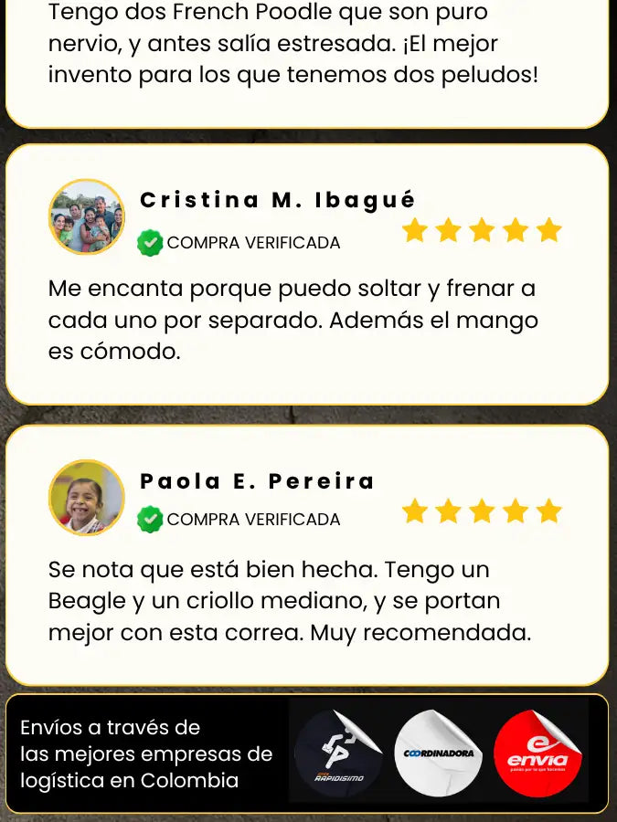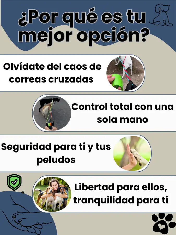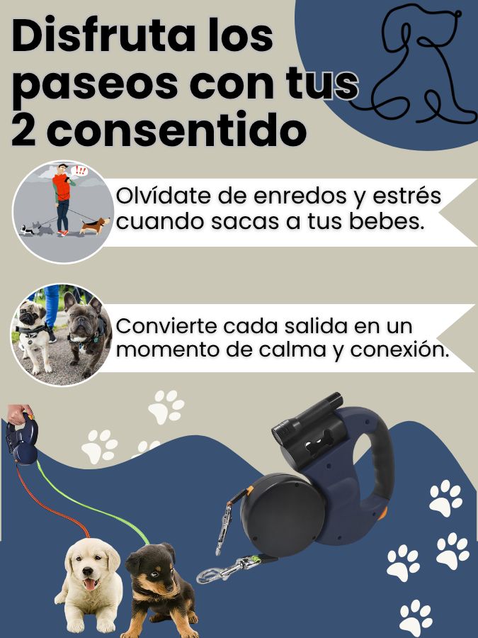 La diferencia está en la tranquilidad. No hay enredos, no hay estrés, no hay riesgo de caídas. Solo paseos más cómodos, seguros y felices con tus dos peludos. 🐕🐕💛